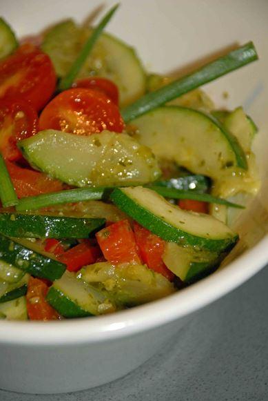 Ogromnie ważne jest, aby nie rozgotować warzyw. Jeśli nie będą chrupiące potrawa straci charakter i nie będzie ładnie wyglądać. Jeśli lubicie monochromatyczne połączenia dodajcie do cukinii zieloną paprykę. Jeśli lubicie połączenia bardziej kolorowe wymieszajcie żółtą i czerwoną i pomarańczową paprykę z zieloną cukinią.