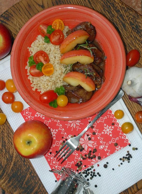 Swoją wątróbkę podajcie z ulubionymi dodatkami. U nas była to kasza bulgur. Polecam.