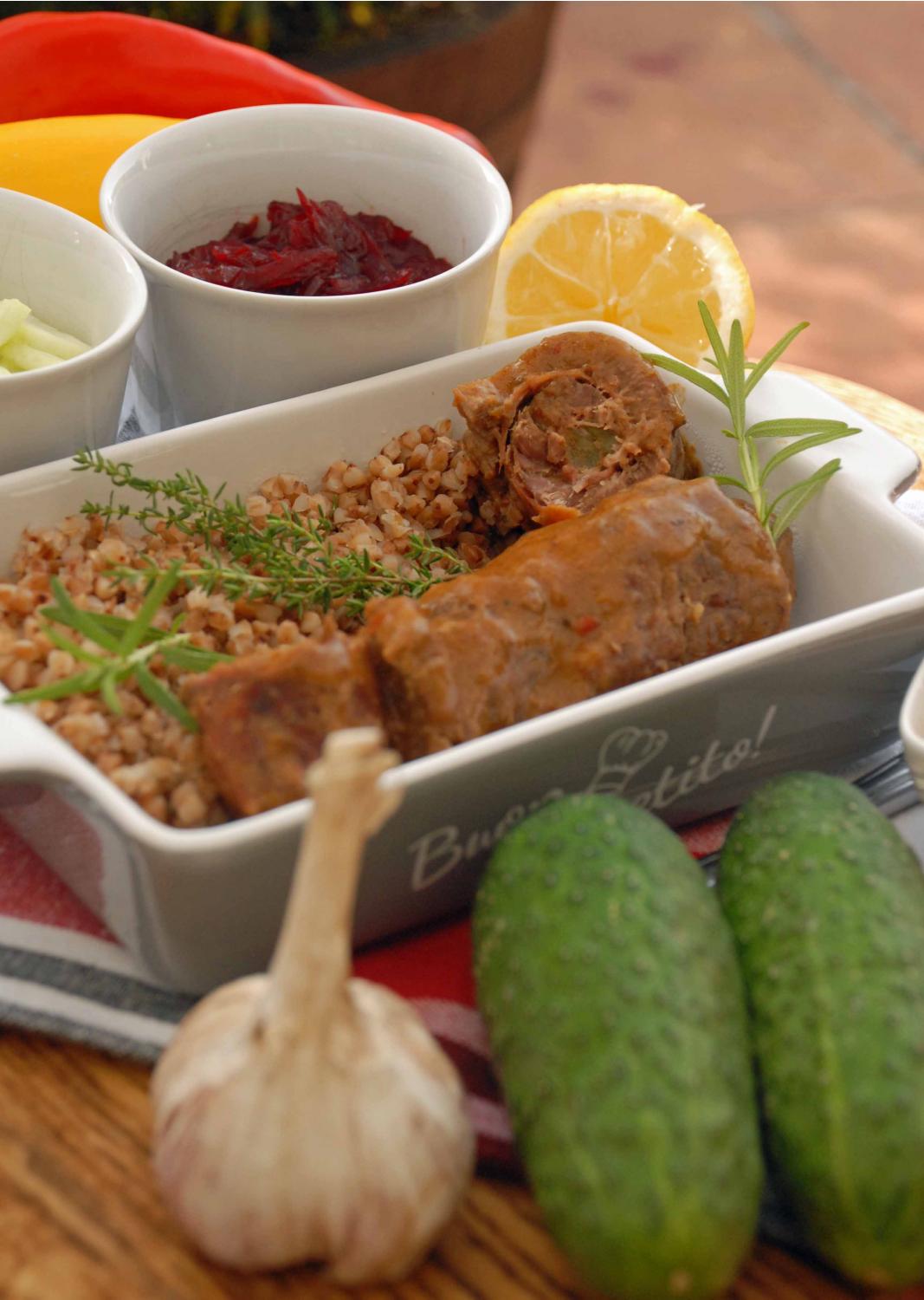 Rolada zwana inaczej zrazem zawijanym to farsz zawinięty w płat mięsa. Najczęściej jest to spory płat wołowego mięsa, ale czasem przygotowuję roladki z mięsa indyczego. Tradycyjnie farsz to boczek, ogórek kiszony, cebula, czasem również skórka razowego chleba. Mięso jest doprawione musztardą, solą i pieprzem. Na Górnym Śląsku jest ona często podawana z modrą kapustą oraz kluskami śląskimi. W moim domu do zrazów zawsze były buraczki zasmażane oraz kasza gryczana. Taki właśnie tradycyjny obiad zaserwowałam dziś mojej rodzinie. Było pysznie!